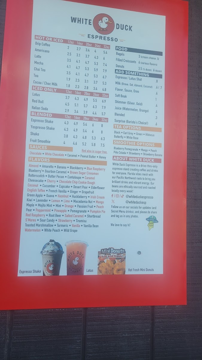 Welcome to White Duck Espresso, a delightful haven for coffee enthusiasts and food lovers alike! Nestled at 3561 US-19, New Port Richey, FL, this charming café stands out for its eclectic menu and warm, inviting atmosphere. With a phone number of +1 727-835-5070, you’ll want to save this gem in your contacts for your next caffeine fix.
